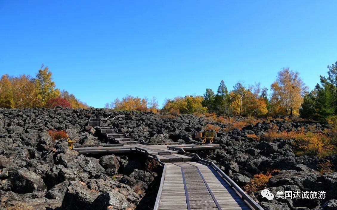 【五大連池風景區】位於黑龍江省西北部的五大連池市,小興安嶺西南側山前臺地上,距北安市60公里。四周分佈著14座火山體,以及一系列火山礦泉,構成了獨特而典型的火山景觀,因而有“火山博物館”之稱。是我國著名的火山遊覽勝地。由於火山熔岩堵塞的河道,形成了五個相連的火山堰塞湖,因其形如串珠狀,故稱“五大連池”。